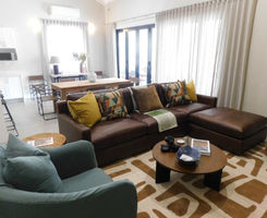This luxury 4-bedroom bungalow is perfect for big groups. Large spacious open plan living area, generous veranda, cottage, private garden and swimming pool means it is the perfect place to relax after exploring the wonders of Victoria Falls. There are 3 bedrooms in the main house and attached is a small cottage with living space and en suite bathroom. Fully furnished and with a fully equipped kitchen.